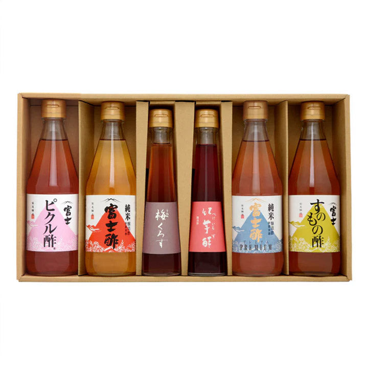 定番の純米酢2種類と使いやすい調味酢、ドリンクにお薦めの果実酢をセットにしました。