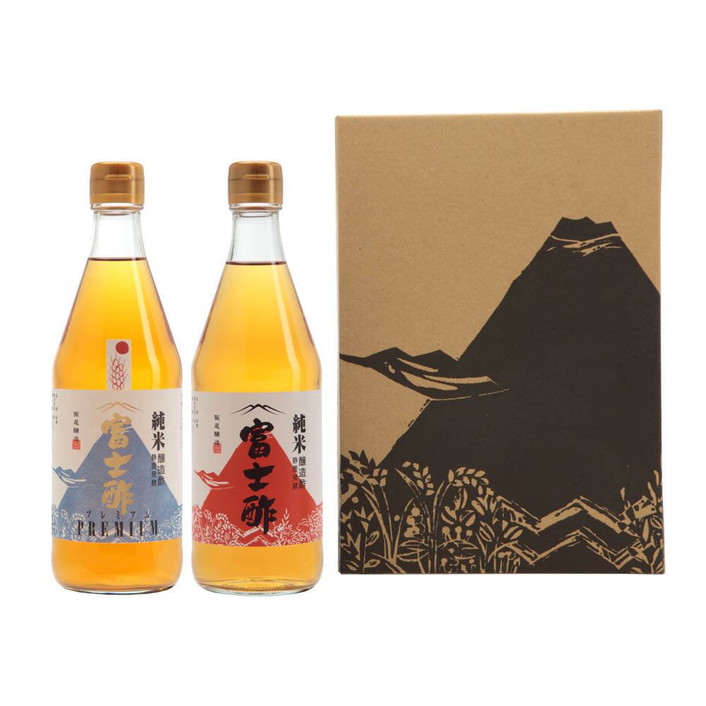 看板商品の「純米富士酢」と穏やかな酸味の「富士酢プレミアム」。