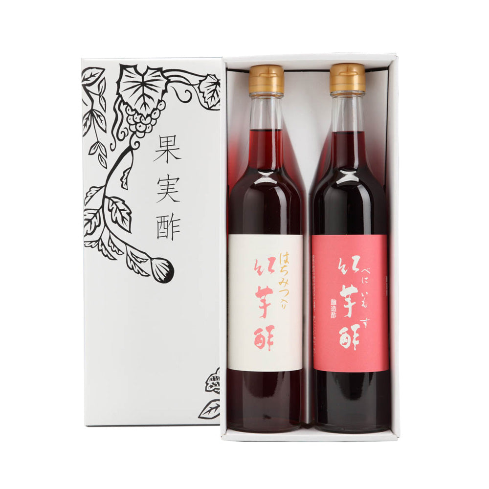 不動の人気を誇る、ポリフェノールたっぷり「紅芋酢」と、甘くてどなたでも飲みやすい「はちみつ入り紅芋酢」をセットにしました。