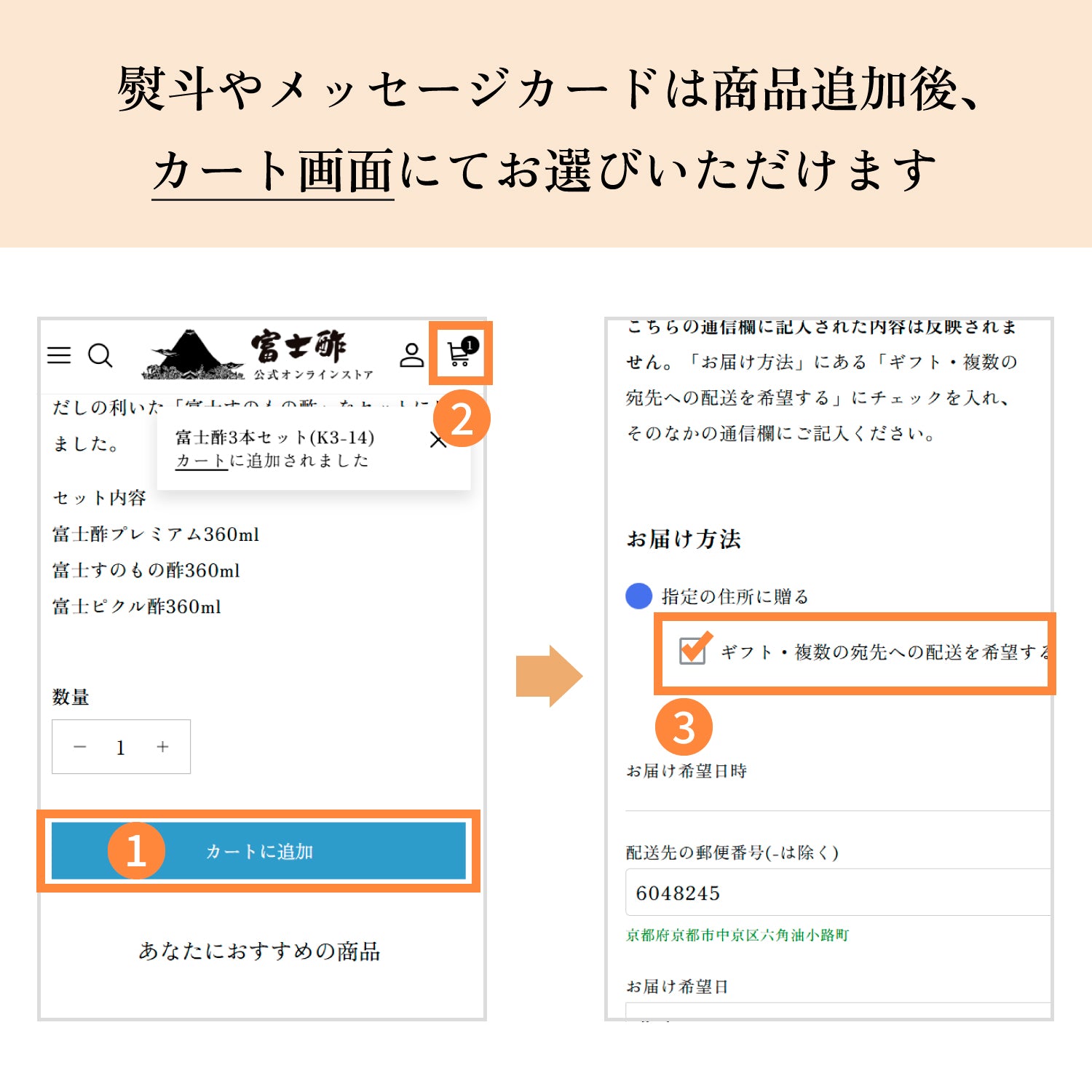 ▼熨斗/水引ラッピング/メッセージカードをご利用の場合