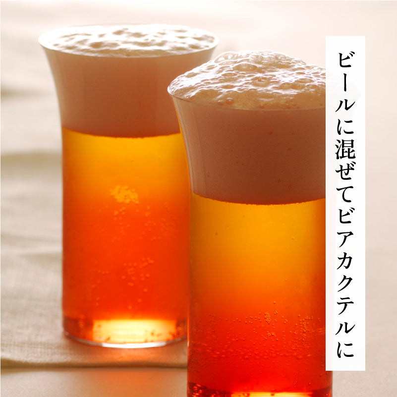 ビールに入れると、苦みが和らいで飲みやすく、ピンク色が鮮やかなビアカクテルになります。